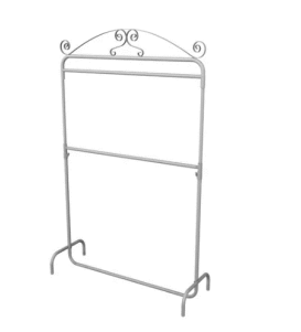 Arara de roupas com design vintage e estrutura em branco, ideal para organizar e destacar suas peças com estilo e praticidade.