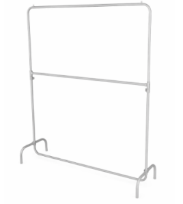A arara possui estrutura metálica com pintura branca, garantindo durabilidade e um visual clássico que valoriza os produtos expostos. Com dois níveis de varões ajustáveis, aumenta a capacidade sem ocupar espaço extra. Seu design garante estabilidade e facilidade para montagem e movimentação dentro do ambiente comercial.
