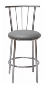A banqueta possui estrutura completamente cromada, garantindo resistência contra oxidação e brilho duradouro. Seu assento é revestido em material sintético, disponível em cores variadas (cinza e vermelho), facilitando a combinação com diferentes decorações.