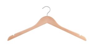 Os cabides de madeira são construídos em madeira maciça (Pinus) e suportam grandes pesos de roupa. Possui gancho giratório cromado que vai evitar oxidação e possibilitar variação na exposição frontal e lateral das roupas. Possui também pequenos cortes (cavas) precisas, em cada extremidade que permite pendurar roupas como regata, por exemplo, sem que ela fique escorregando e soltando do cabide.
