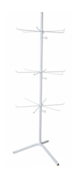 Feito em metal pintado na cor branca, o meijeiro apresenta 3 níveis com braços que giram para facilitar o manuseio. Ideal para uso em lojas, quartos ou áreas de serviço, ajuda a organizar e facilitar o dia a dia. O produto não acompanha medidas específicas, mas sua construção é leve e prática.